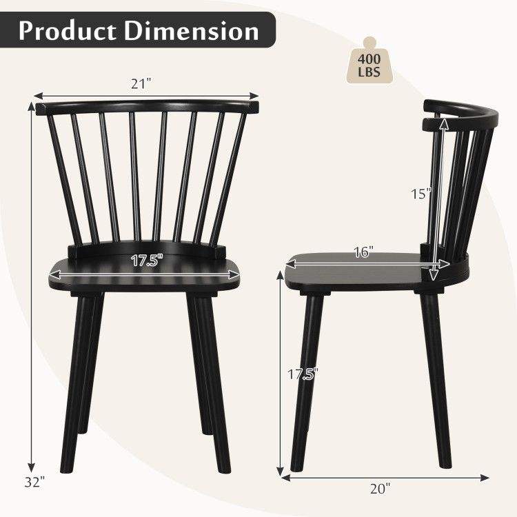 Windsor Spindle Back Dining Chairs Set of 2 Kitchen Rubber Wood with Comfortable Seat & Backrest