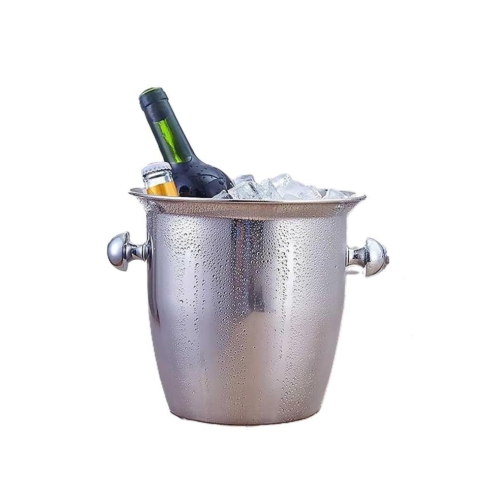 ถังแช่ไวน์ทำจากโลหะสแตนเลสสีเงินพร้อมด้ามจับตู้แช่ไวน์ทำด้วยมือ