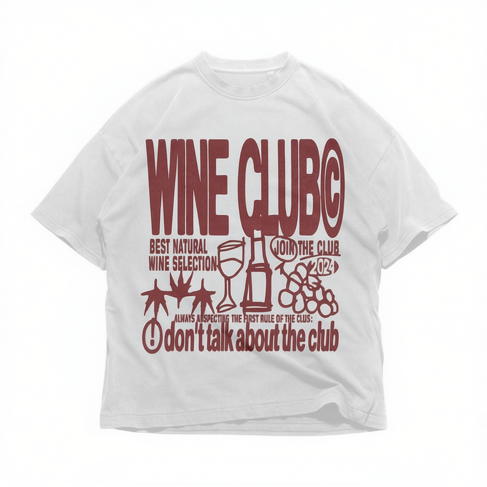 เสื้อยืดลายไวน์คลับทรงโอเวอร์ไซส์สำหรับทุกเพศ สไตล์สตรีทแวร์ เสื้อตลกสำหรับคนรักไวน์ เสื้อยืดสไตล์ Y2K สำหรับงานบรันช์
