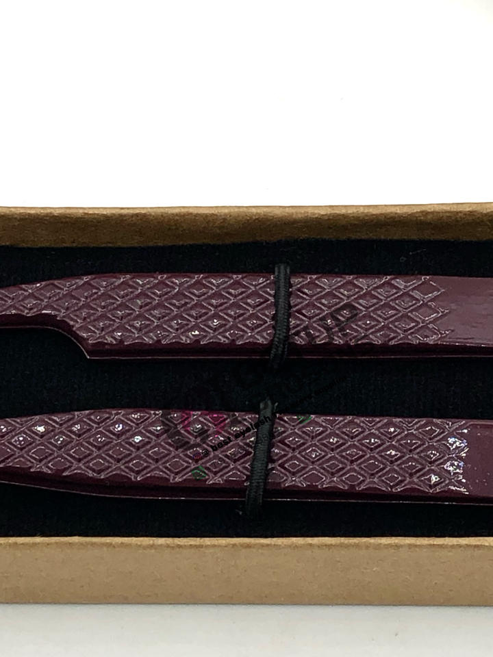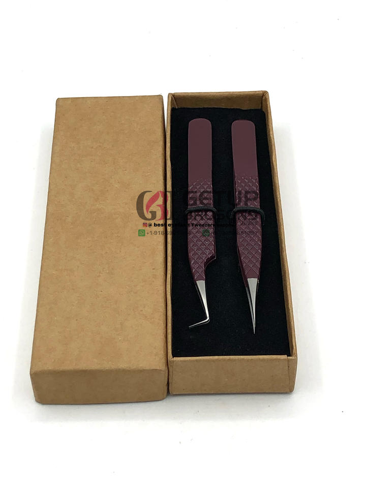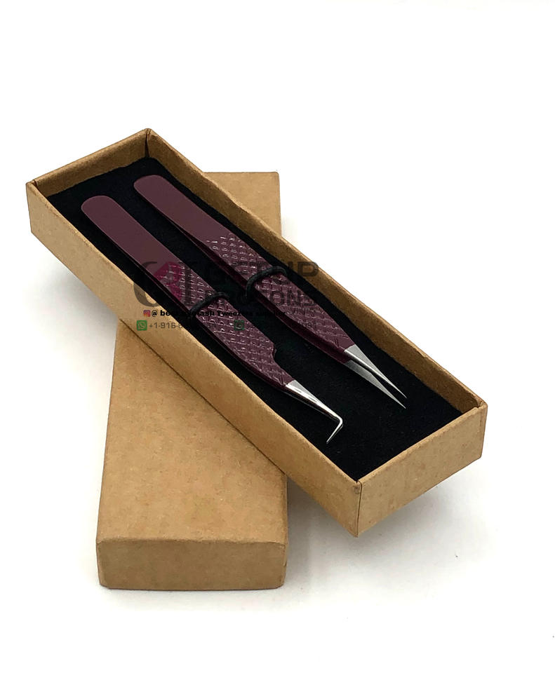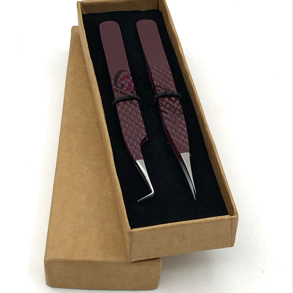 แหนบต่อขนตาตรงเรียวยาว90องศาเคลือบผงสีไวน์เครื่องมือความงามด้ามจับเพชรเงิน