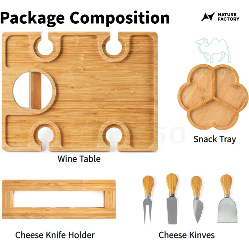 Wine Picnic Table With Bottle and Glasses Holder Appetizer Serving Tray Cheese Knives and Travel Storage Bag for Outdoor