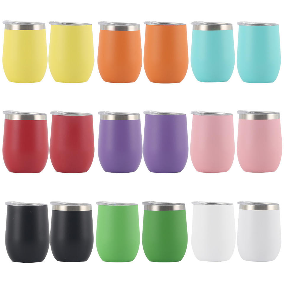 แก้วไวน์สแตนเลสสองชั้น เก็บอุณหภูมิ แก้วน้ำสุญญากาศ แก้วรูปไข่ แก้วเก็บความร้อนส่วนตัว ขนาด 12 ออนซ์ แก้วไวน์แบบกำหนดเองได้