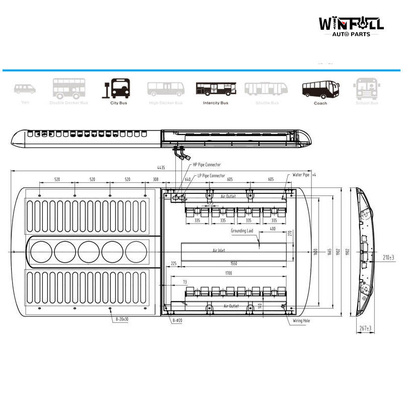 เครื่องปรับอากาศบนหลังคารถบัส Winfull ความจุสูง ใช้สารทำความเย็น R134a พร้อมเทอร์โมสตัท สำหรับรถบัส รถตู้ และรถโดยสาร 12/24V