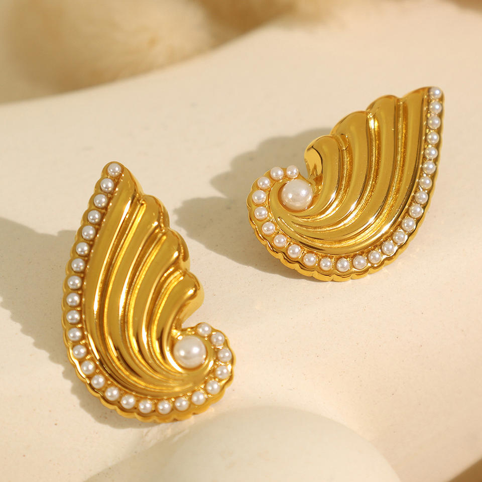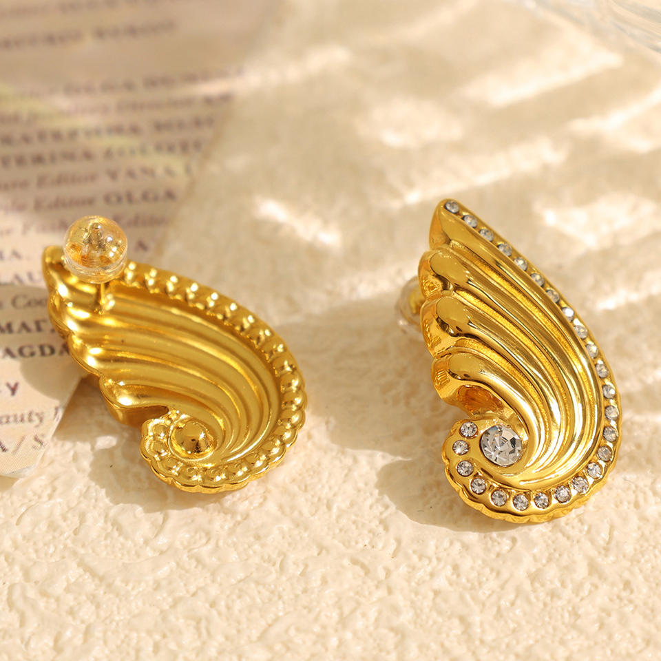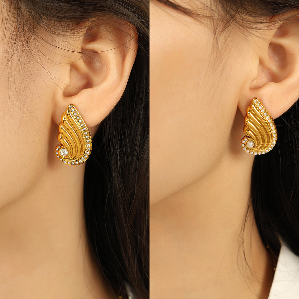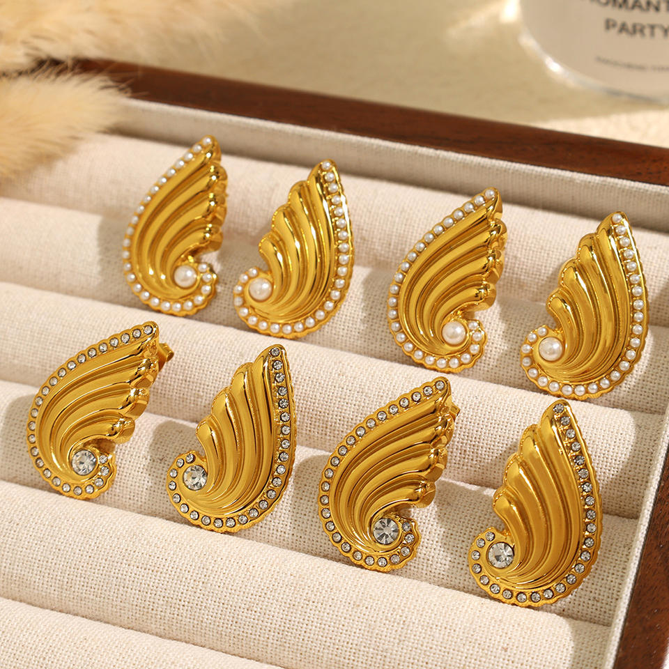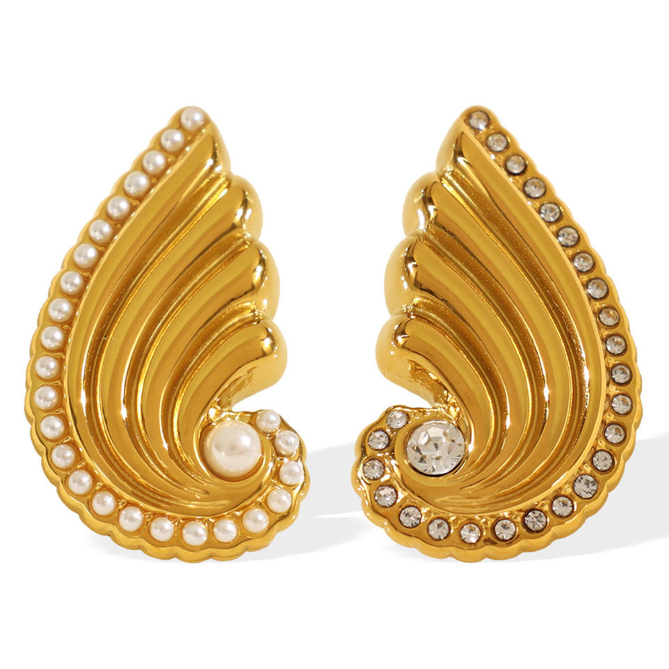 ต่างหูแบบหนีบรูปปีก ประดับมุกและคริสตัล สีทอง สำหรับผู้หญิง เหมาะสำหรับงานปาร์ตี้ เครื่องประดับแฟชั่น