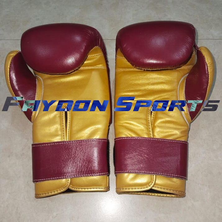 ถุงมือชกมวยหนังสองสีคุณภาพสูง พร้อมโลโก้สั่งทำพิเศษ ปิดด้วยแถบตีนตุ๊กแก สำหรับฝึกซ้อม MMA คิกบ็อกซิ่ง และการต่อสู้