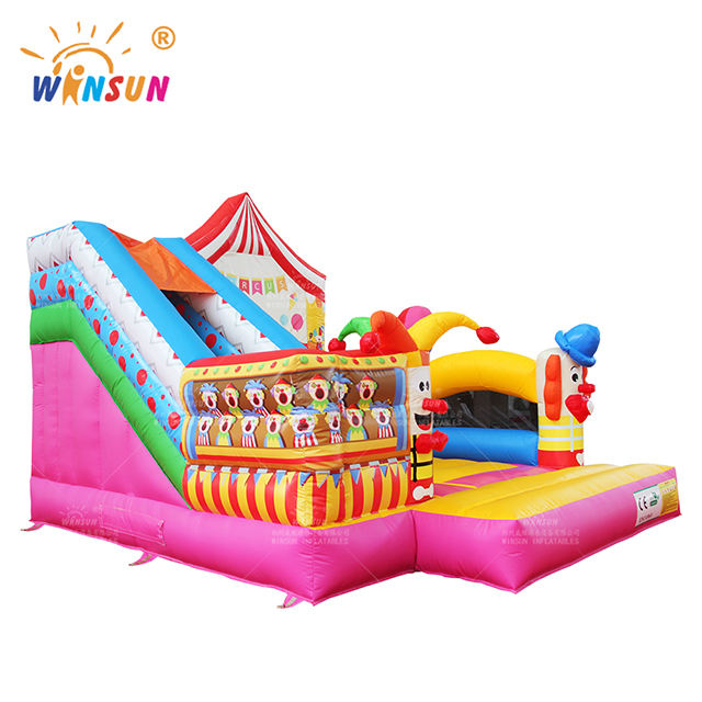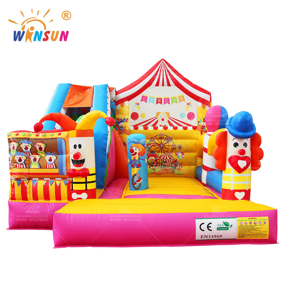 Winsun ปราสาทเป่าลมรูปตัวตลกสำหรับบ้านเป่าลมบ้านเป่าลมกันไฟและกันน้ำติดตั้งง่ายชุดคอมโบพร้อมสไลด์