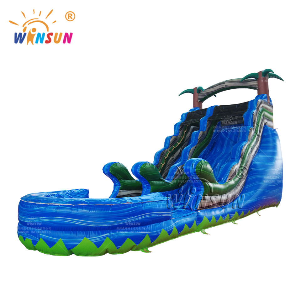 Winsun สไลเดอร์เป่าลมแบบพกพาปรับแต่งได้สระว่ายน้ำหินอ่อนสีฟ้าเขตร้อนปราสาทเป่าลมมีสไตล์ส่วนบุคคล