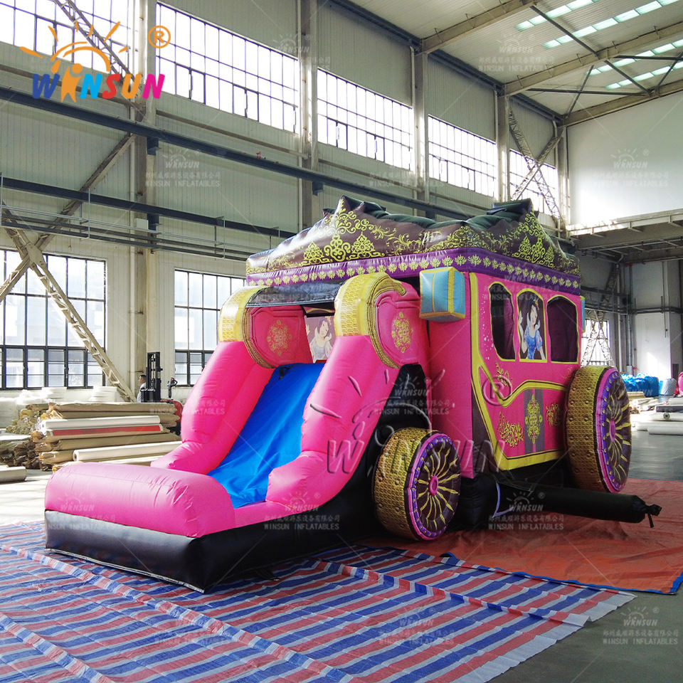 Winsun ปราสาทเป่าลมธีมเจ้าหญิงน่ารักพร้อมสไลด์กันไฟและกันน้ำติดตั้งง่ายสำหรับการใช้งานเชิงพาณิชย์