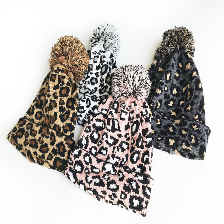 หมวกบีนนี่แฟชั่นสำหรับผู้หญิง2021ฤดูหนาวผ้าแจ็คการ์ดให้ความอบอุ่นหรูหราพิมพ์ลายเสือดาวออกแบบได้ตามต้องการ