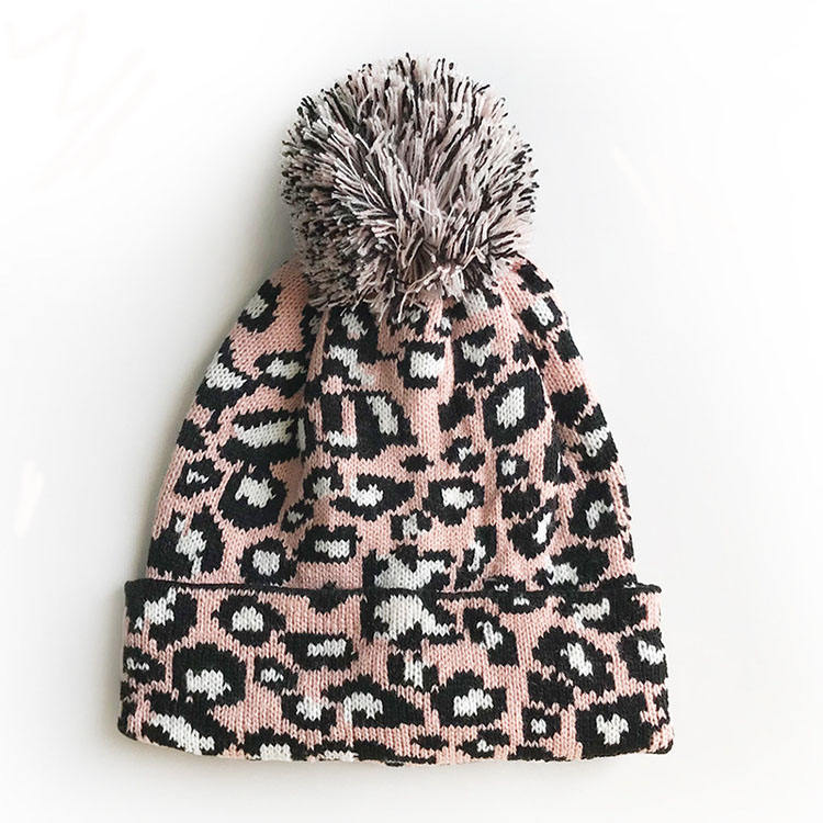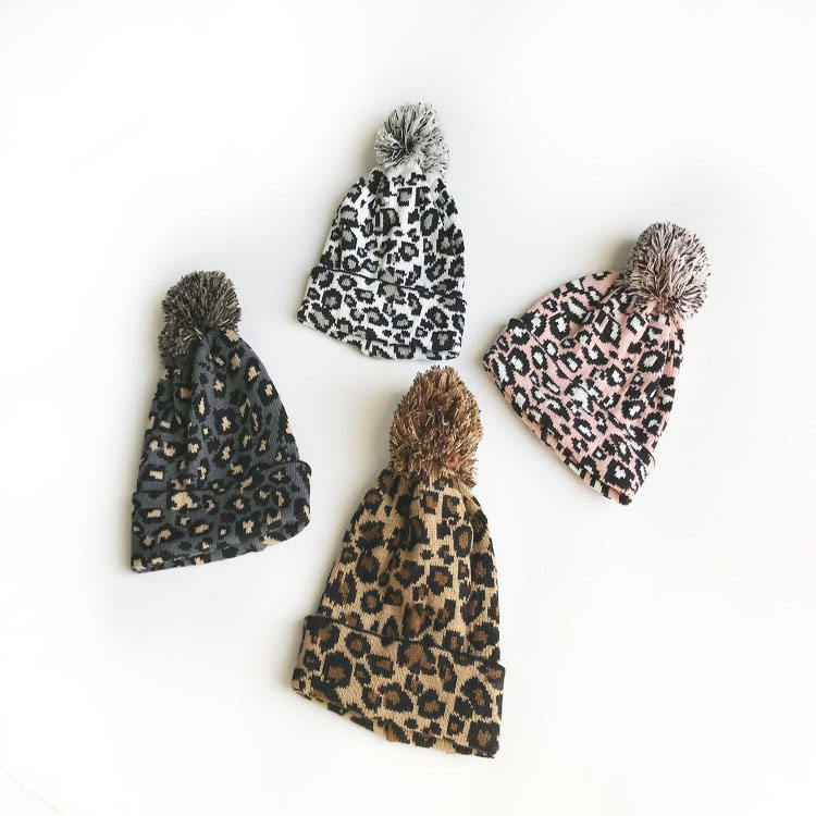 ชื่อผลิตภัณฑ์:หมวกไหมพรมปอมปอมปอมผู้หญิงลายเสือดาวหรูหรา