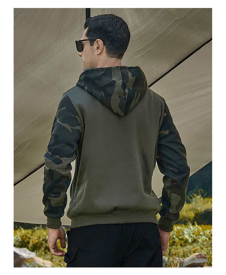 เสื้อฮู้ดดี้ผู้ชายลายพรางแบบสตรีท ซิปหน้า ผ้าฝ้าย 100% หนานุ่ม รุ่นวินเทอร์ 2025 ดีไซน์สั่งทำพิเศษ เป็นมิตรต่อสิ่งแวดล้อม
