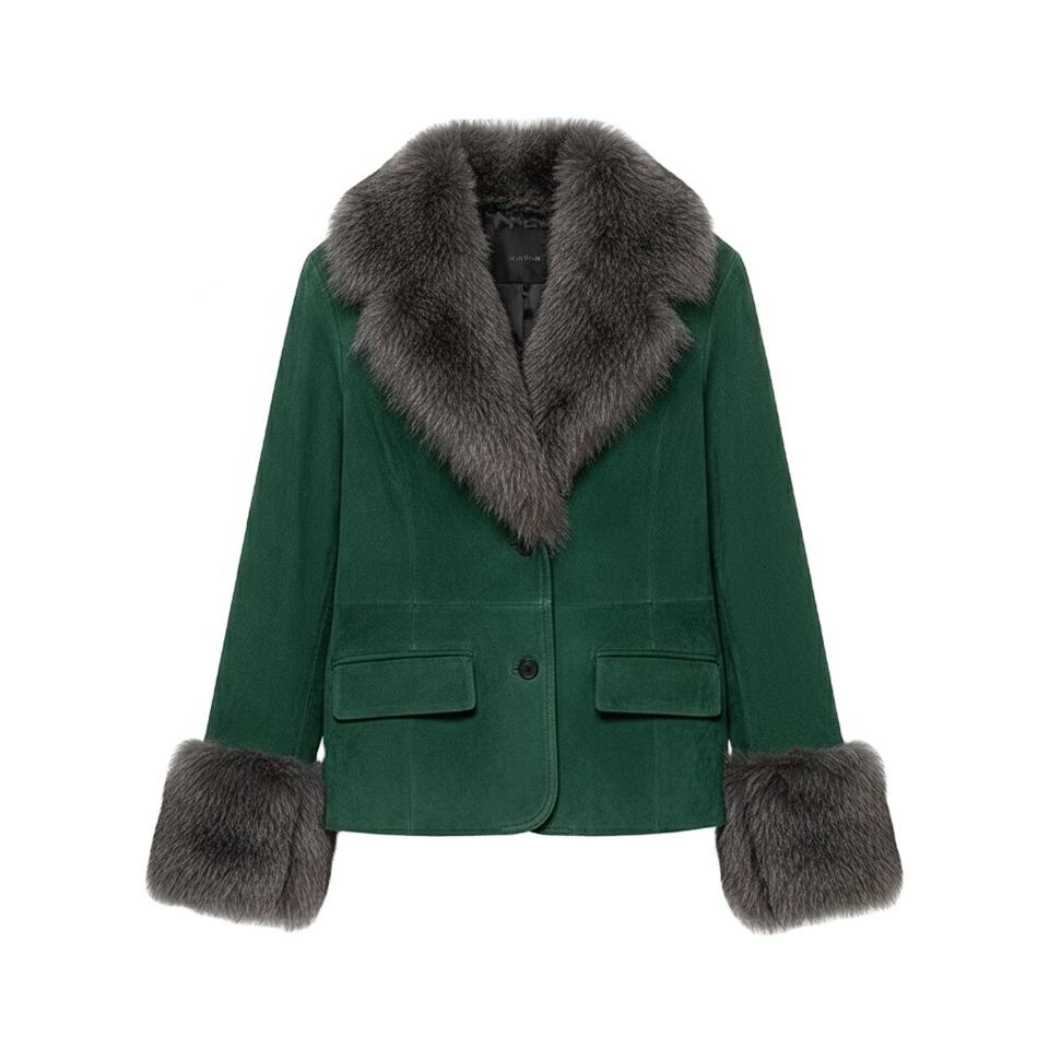 เสื้อโค้ทผู้หญิงแฟชั่นฤดูหนาวปี 2026 ผ้าหนังกลับกันน้ำ แต่งขนเฟอร์ บุด้วยขนเป็ด ทรงคอวี ติดกระดุมแถวเดียว ระบายอากาศได้ดี สวมใส่สบาย