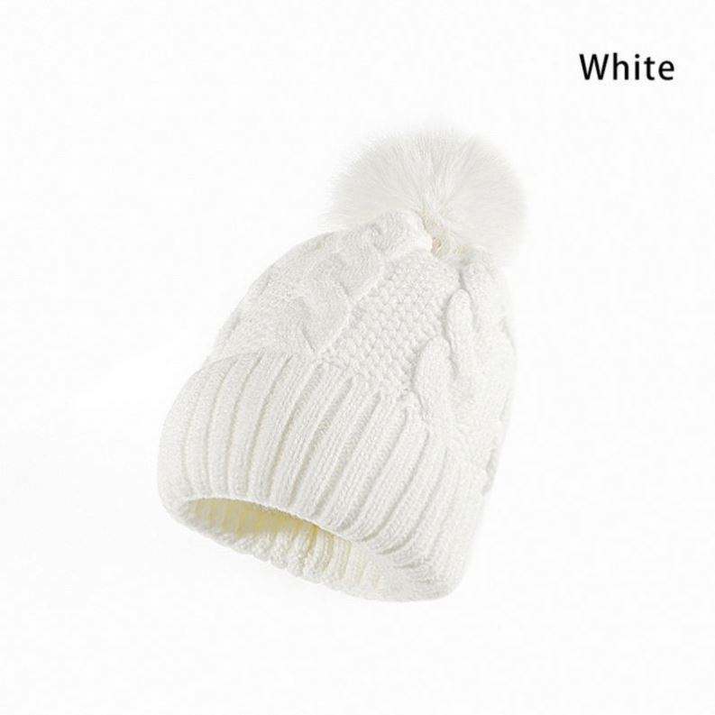 หมวกบีนนี่ไหมพรมอะคริลิกสำหรับผู้หญิง ป้องกันความหนาวเย็น มีที่ปิดหู แบบหลวมๆ ตกแต่งพู่ สำหรับฤดูหนาว