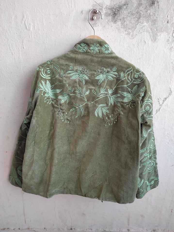 เสื้อแจ็คเก็ตวาร์ซิตี้ผ้ากำมะหยี่ถักลายดอกไม้สไตล์โบฮีเมียนสำหรับฤดูใบไม้ร่วงและฤดูหนาว ป้องกันรอยยับ เป็นมิตรกับสิ่งแวดล้อม กันลม ระบายอากาศได้ดี ลายซูซานี