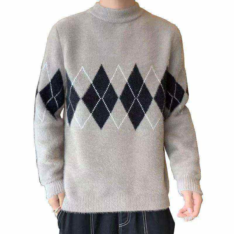 เสื้อสเวตเตอร์ไหมพรมผสมวิสโคสสำหรับผู้ชาย ฤดูใบไม้ร่วง ฤดูหนาว คอทรงกลม แฟชั่นทันสมัย พร้อมโลโก้ด้านหน้า