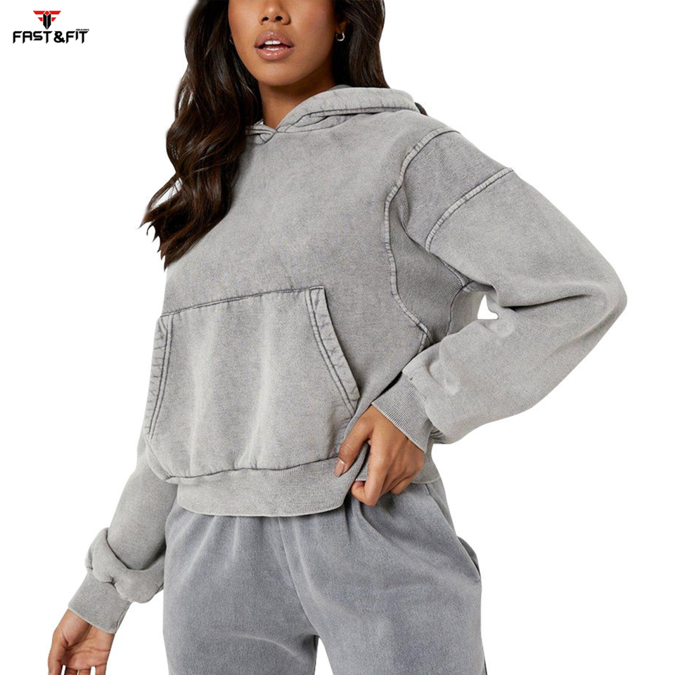 เสื้อฮู้ดดี้ผู้หญิง ดีไซน์ใหม่ แฟชั่นฤดูใบไม้ร่วงและฤดูหนาว ผ้าถักคุณภาพพรีเมียม กันยับ ระบายอากาศได้ดี ล้างสีแบบแอซิดวอช