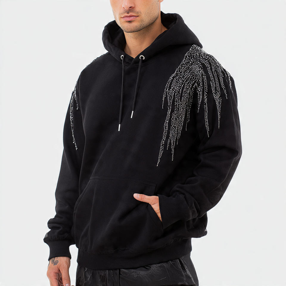 เสื้อฮู้ดประดับพลอยเทียมขนาดใหญ่สำหรับผู้ชาย