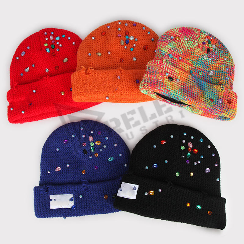 หมวกบีนนี่ฤดูหนาวแบบยูนิเซ็กซ์ ผ้าผสมอะคริลิกเนื้อนุ่ม ปักลาย 3 มิติ ประดับเพชรเม็ดใหญ่ แฟชั่น ราคาประหยัด