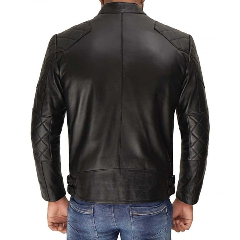 แจ็คเก็ตหนังแท้สีดำสำหรับฤดูหนาว สไตล์ไบค์เกอร์ สำหรับผู้ชาย รับผลิตแบบ OEM ODM พร้อมโลโก้ด้านหน้า กันน้ำ กันลม ระบายอากาศได้ดี