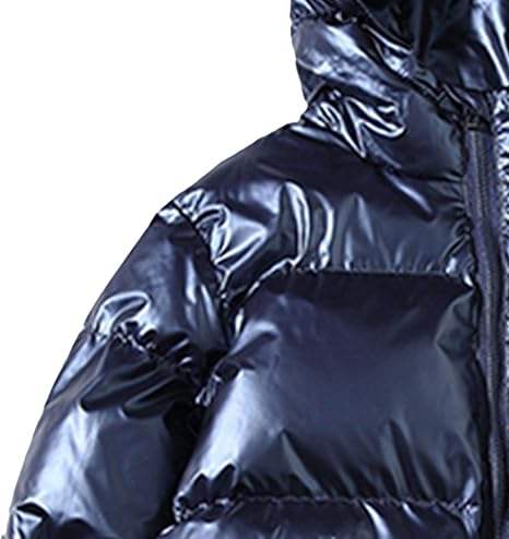 แจ็กเก็ตขนเป็ดมีฮู้ดสำหรับผู้ชายเสื้อโค้ทแฟชั่นแนวสตรีทให้ความอบอุ่นกันลมสีฟ้าเมทัลลิกแวววาว