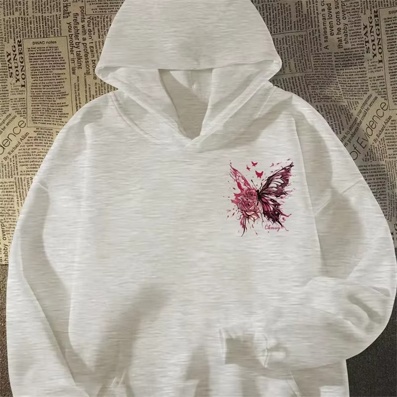 เสื้อฮู้ดกราฟิกสุดสร้างสรรค์ลายผีเสื้อกุหลาบฤดูหนาวสำหรับผู้ชายเสื้อกันหนาวมีฮู้ดผ้าฟลีซแฟชั่นแนวสตรีท Y2K เสื้อผ้ามีฮู้ด