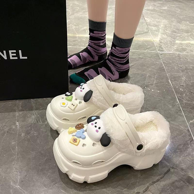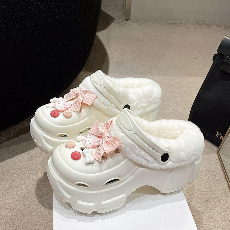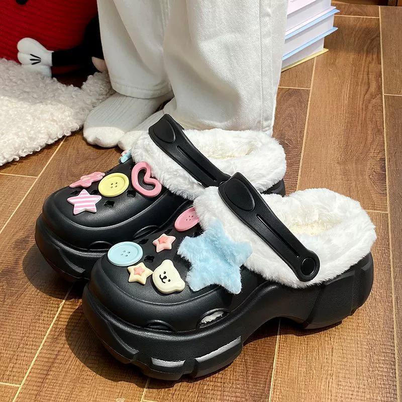 รองเท้าแตะผ้าฝ้ายแบบปิดนิ้วเท้า กันลื่น พื้นนุ่ม อุ่นสบาย ระบายอากาศ ป้องกันกลิ่น ตกแต่งด้วยแถบลายแฟชั่น สำหรับฤดูหนาว