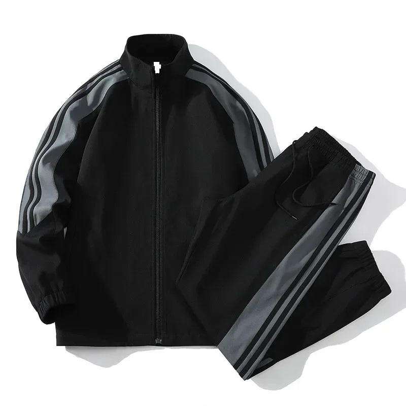 คอลเลคชั่นฤดูหนาวชุดวอร์มผ้าฝ้าย100% มีฮู้ดสำหรับผู้ชายชุดวิ่งสองชิ้นแบบปะติดกางเกงบาน