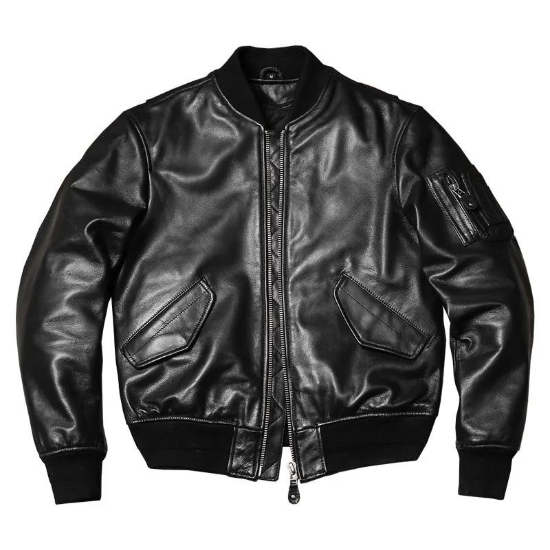 เสื้อแจ็กเก็ตหนังสำหรับผู้ชายแบบมีซิปด้านหน้าสไตล์อเมริกันย้อนยุคผ้าโพลีเอสเตอร์/ ผ้าฝ้าย