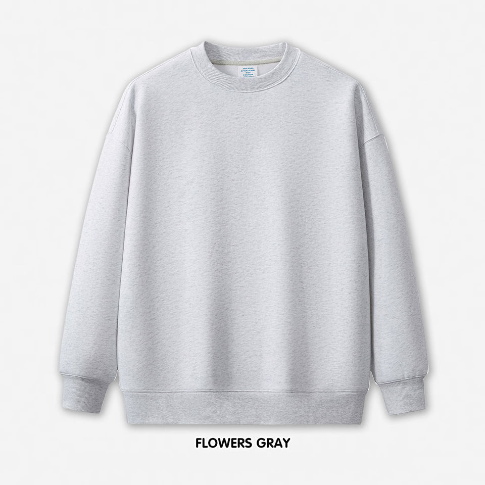 เสื้อสเวตเชิ้ตขนแกะไหล่เฮฟวี่เวทสำหรับฤดูหนาวคอกลมมีกระเป๋าด้านข้างใช้ล้างกรดใช้ได้ทั้งชายและหญิงสีซีด