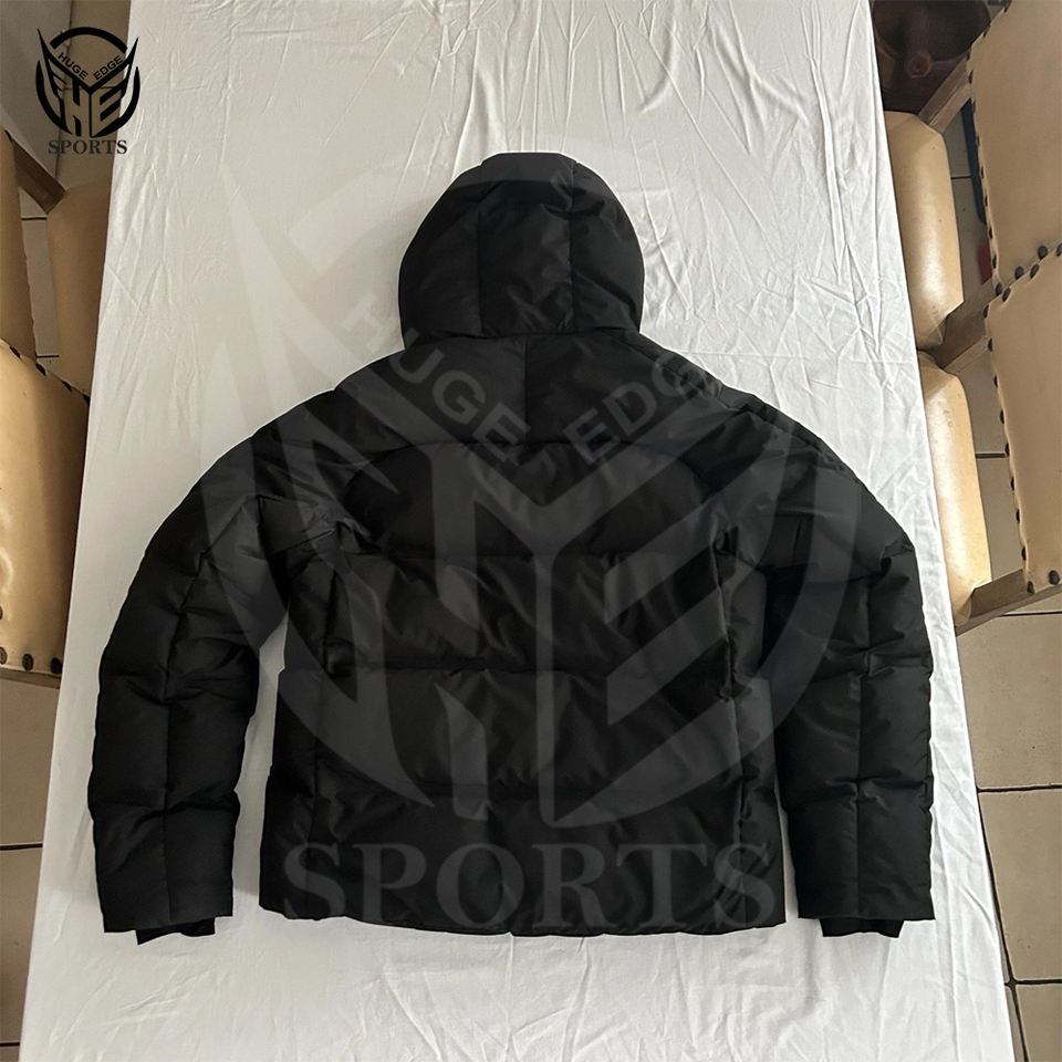 แจ็คเก็ตขนเป็ดผ้าฝ้ายมีฮู้ดสำหรับผู้ชายเสื้อครอปซิปโลโก้ออกแบบได้ตามต้องการสำหรับฤดูหนาว