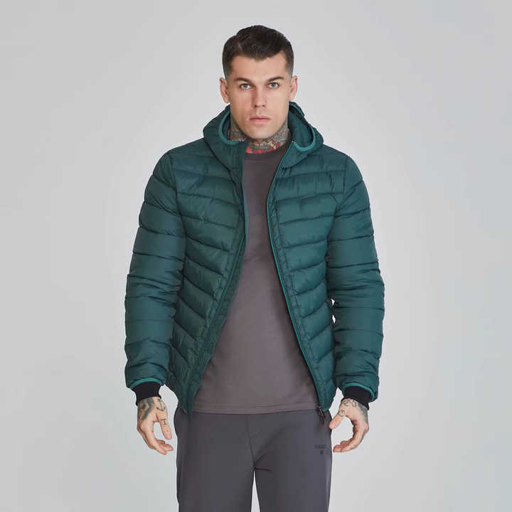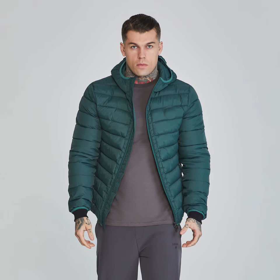เสื้อโค้ทพัฟเฟอร์บุใยสังเคราะห์สำหรับผู้ชายสไตล์ไฮสตรีท คุณภาพสูง น้ำหนักเบา มีซิป ฮู้ด คอตั้ง ปรับแต่งได้