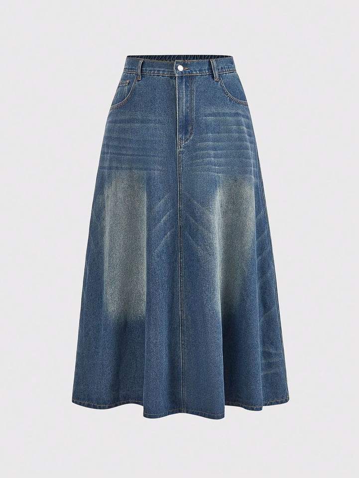 ประเภท รูปแบบ:กระโปรงยาวผ้ายีนส์
