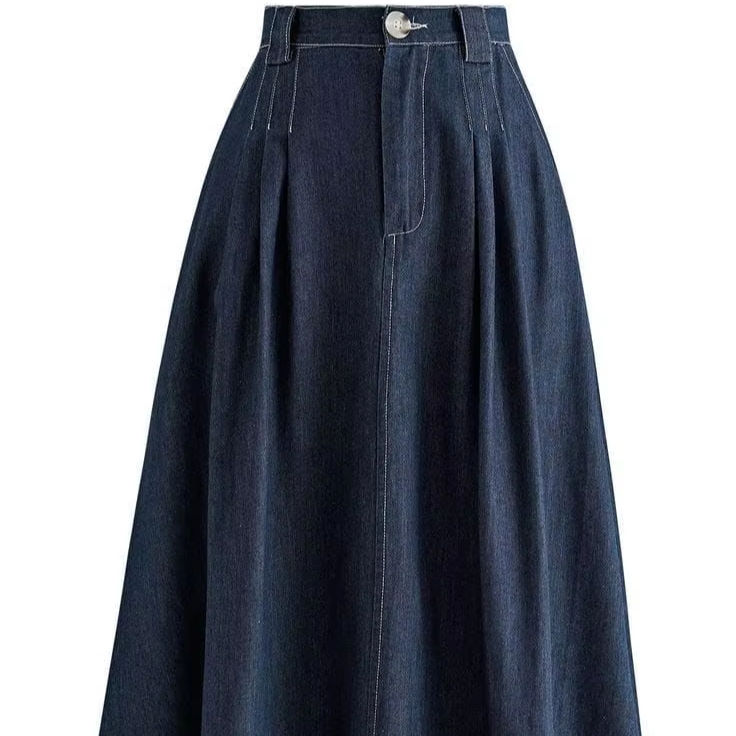 กระโปรงยาวผ้ายีนส์ฤดูหนาวสำหรับผู้หญิงมีกระดุมสำหรับ2025สไตล์ลำลองกับเทศกาล