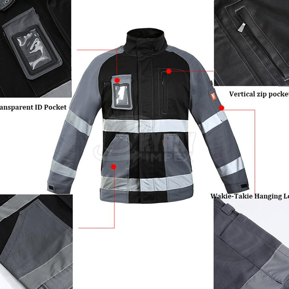 ฤดูหนาวแจ็คเก็ตสะท้อนแสงที่ถอดออกได้การป้องกันความปลอดภัยชุดทํางานฝนแจ็คเก็ตกันน้ําพร้อมกระเป๋าหลายใบ