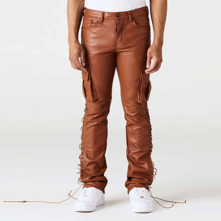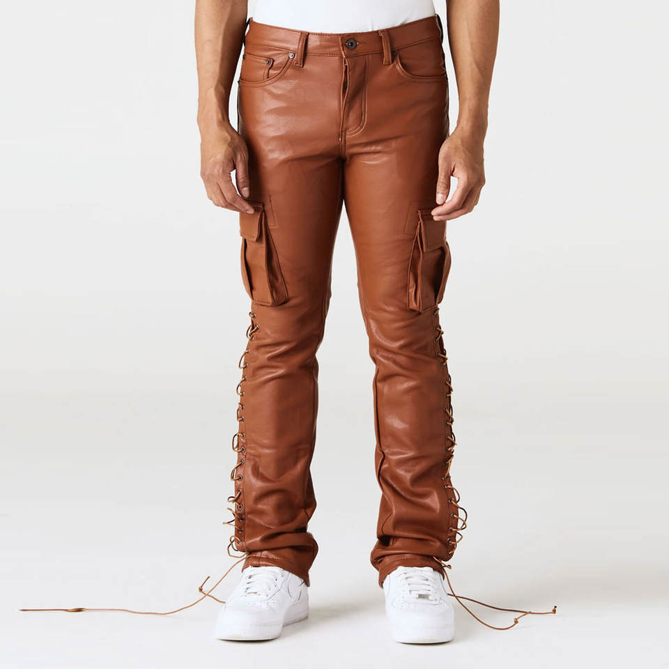 กางเกงหนังผู้ชายทรงตรง น้ำหนักเบา สไตล์ลำลอง ดีไซน์ใหม่สำหรับฤดูหนาว หนังแท้สั่งทำพิเศษ สไตล์สตรีท