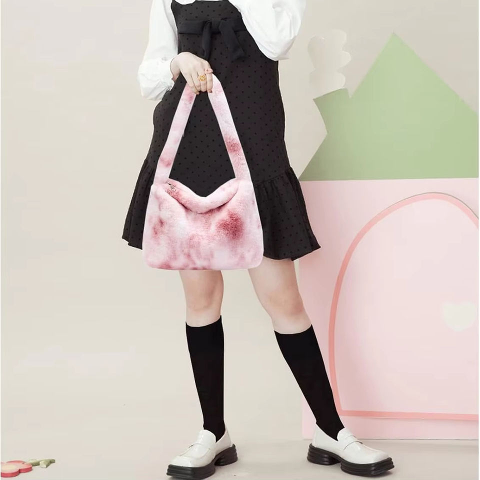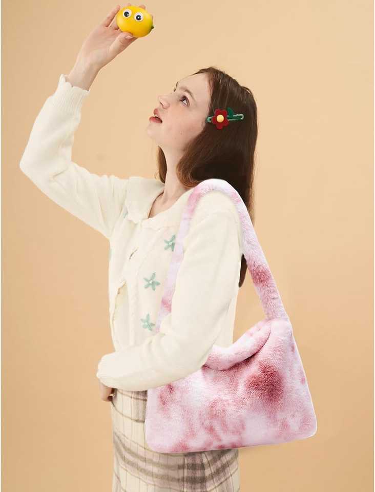 กระเป๋าถือขนเฟอร์แฟชั่นฤดูหนาว กระเป๋าถือขนาดเล็กแบบพองบุผ้านวม กระเป๋าโท้ทขนเชอร์ปาสำหรับผู้หญิง
