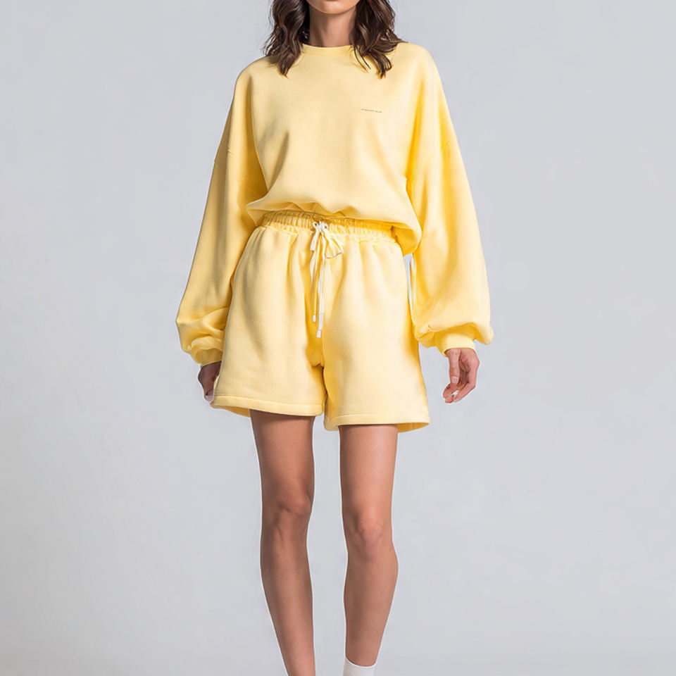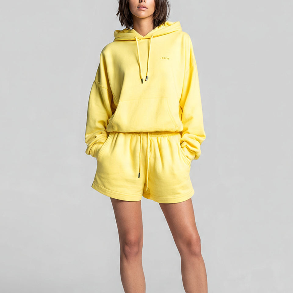 ชื่อผลิตภัณฑ์:ชุดเสื้อสเวตเชิ้ตโอเวอร์ไซส์กางเกงขาสั้นทรงหลวม