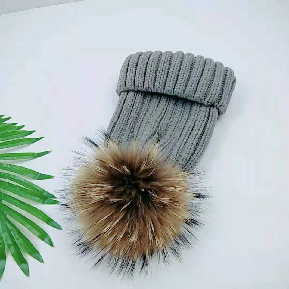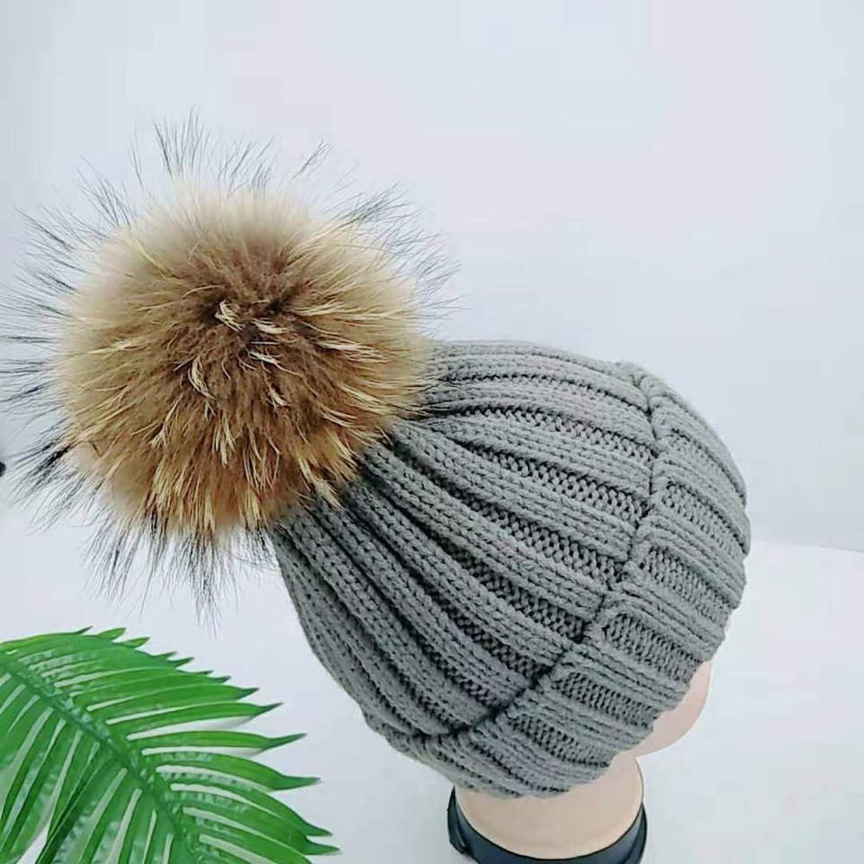 หมวกขนสัตว์ปอมปอมสีสันสดใสสำหรับสาวๆ ฤดูหนาว ถักด้วยมือพร้อมลูกบอลขนสัตว์แท้หนึ่งลูก