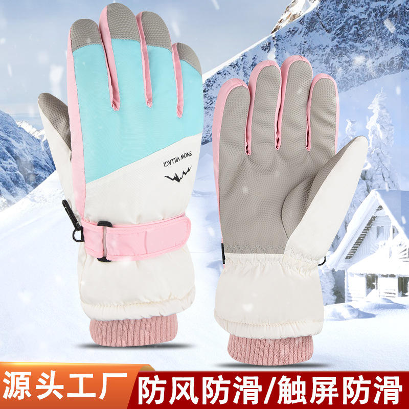 ถุงมือฤดูหนาวหน้าจอสัมผัสแบบยูนิเซ็กซ์กันลมกันน้ำสกีขี่จักรยานการเดินทางที่อบอุ่นบุขนแกะหนาถุงมือกีฬากลางแจ้ง
