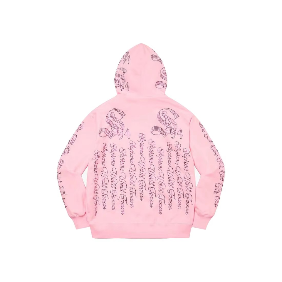 เสื้อกันหนาวแบบสวมหัวรุ่นเฮฟวี่เวทฤดูหนาวมีฮู้ดปักลายตัวอักษรพลอยเทียมมีซิปเต็ม100% พิมพ์ลายดิจิตอลผ้าฝ้ายอินทรีย์