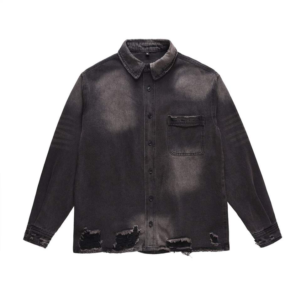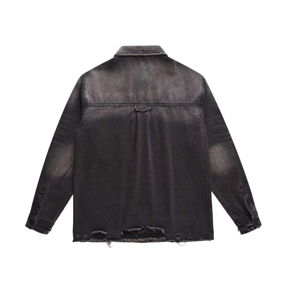แจ็กเก็ตยีนส์ปักลายกรดดำสำหรับผู้ชายสำหรับฤดูหนาว