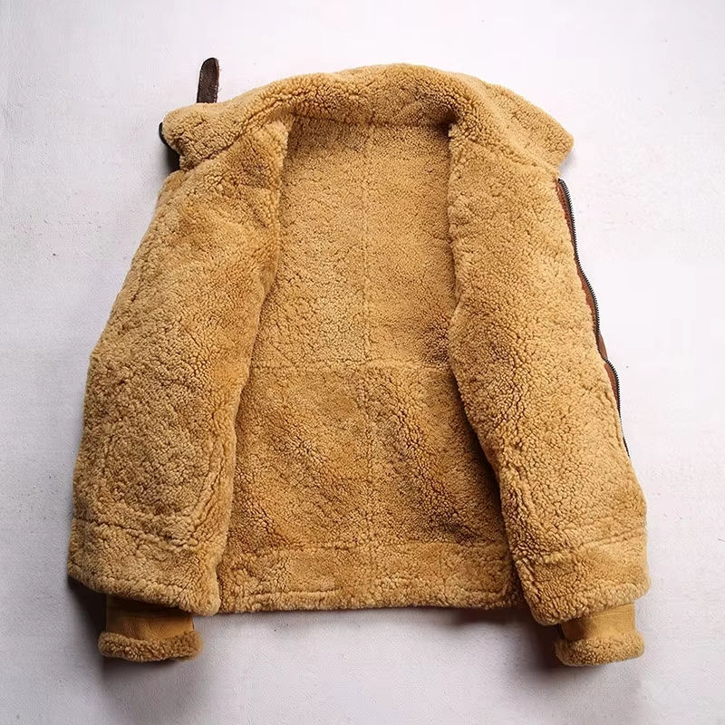 แจ็คเก็ตนักบินหนังแท้บุขนแกะคุณภาพสูงสำหรับผู้ชาย รุ่น B3 สำหรับฤดูหนาว