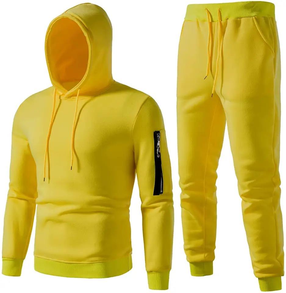 ชุดวอร์มกีฬาแบบมีฮู้ดสำหรับฤดูหนาว ชุดออกกำลังกายและวิ่ง ผ้าฟลีซคอตตอนคุณภาพสูง แห้งเร็ว สำหรับผู้ชาย 2 ชิ้น