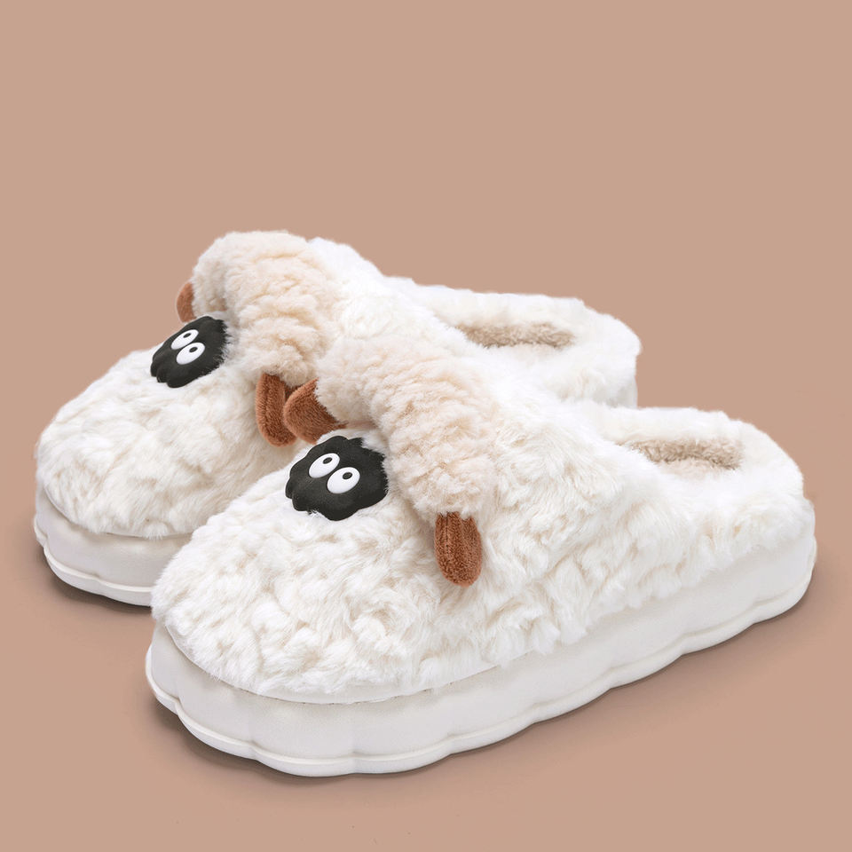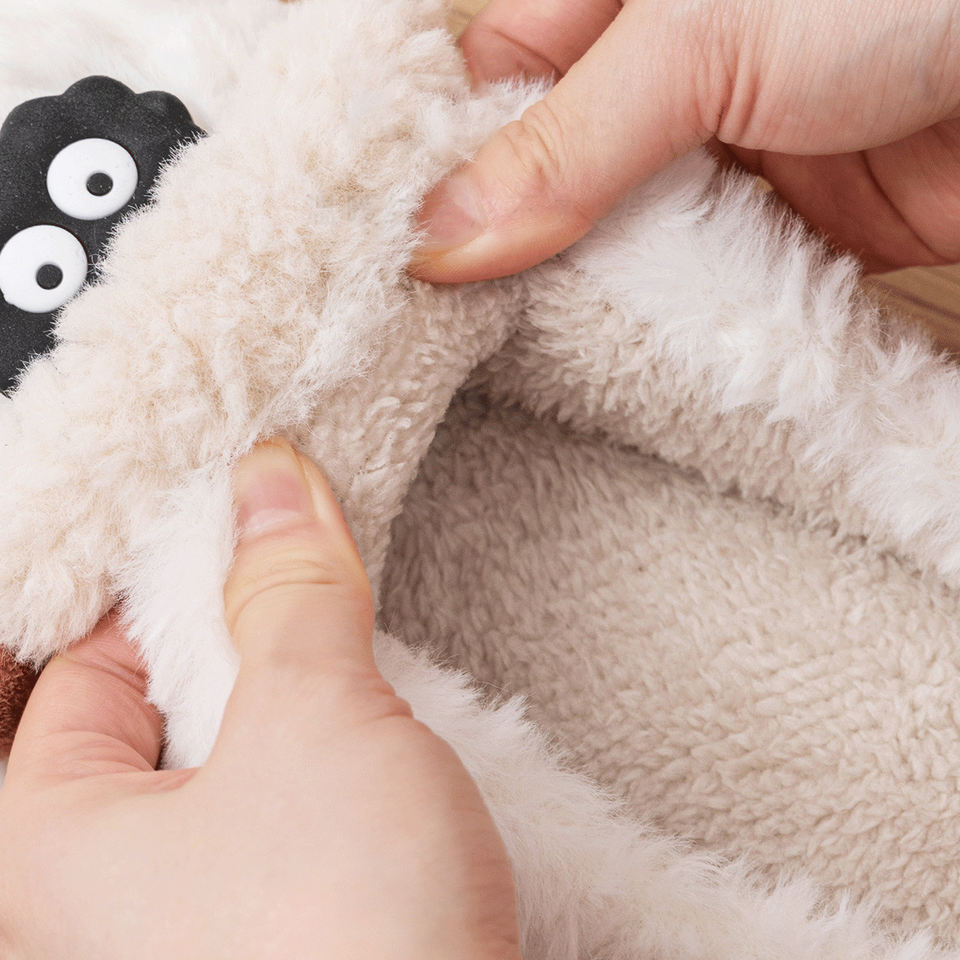 รองเท้าใส่ในบ้านหน้าหนาว พื้นหนาบุขนกำมะหยี่สำหรับคู่รัก ผ้าฝ้ายลายการ์ตูนแกะนุ่มฟู