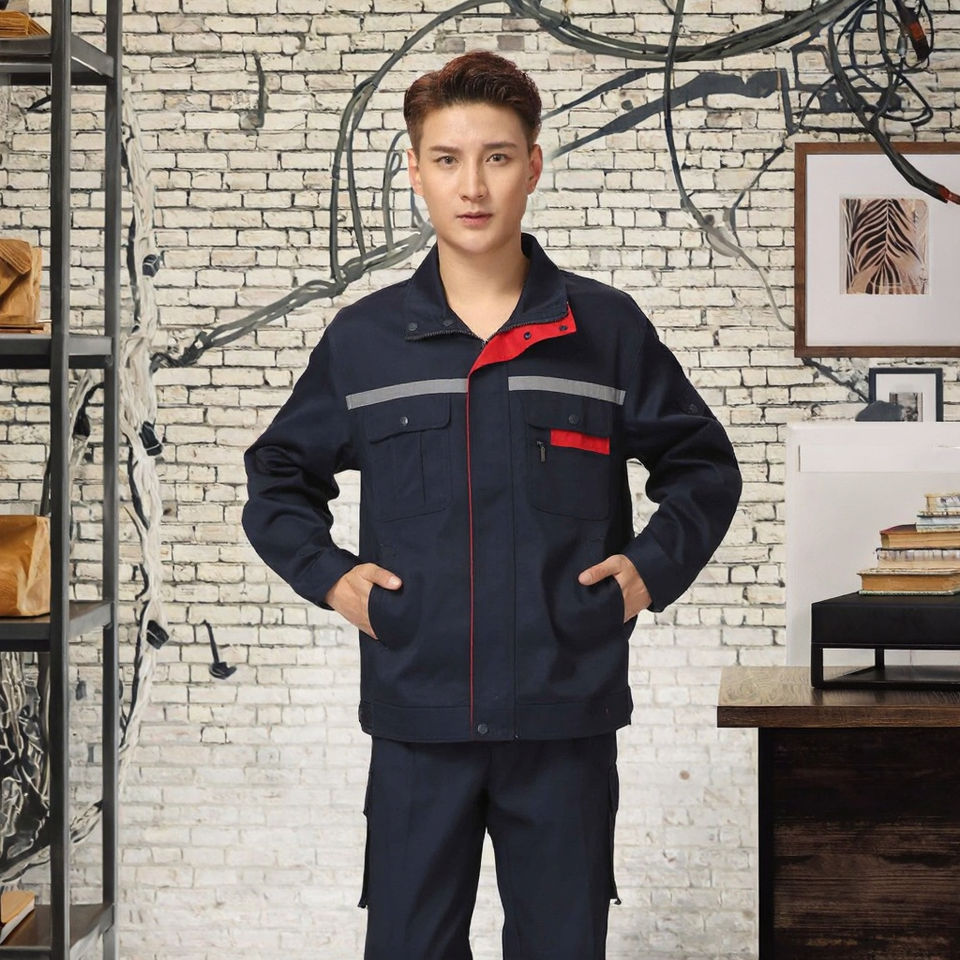 ชุดยูนิฟอร์มคนงานโรงงานอุตสาหกรรมฤดูหนาว ชุดทำงานแบบยูนิเซ็กซ์ ช่างไฟฟ้า ได้รับการรับรองมาตรฐาน CE ทนต่อการขัดถู ตรวจจับเข็มได้