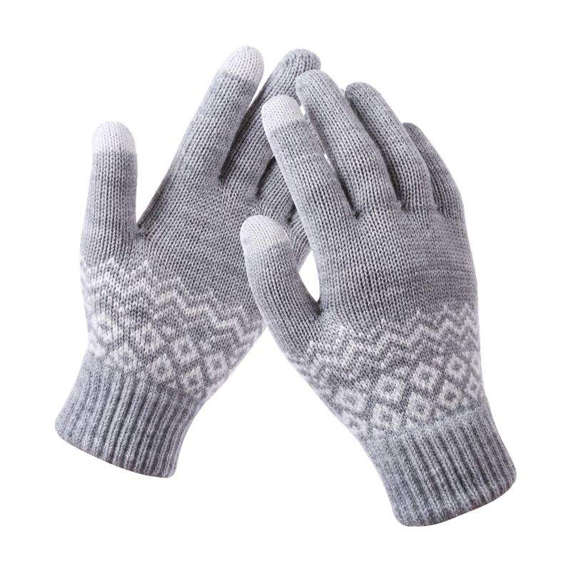 ถุงมือกันหนาวแบบถักลายแจ็คการ์ดสองชั้น ความยาวข้อมือ ใช้กับหน้าจอสัมผัสได้ แฟชั่นสำหรับกิจกรรมกลางแจ้ง จากเวียดนาม