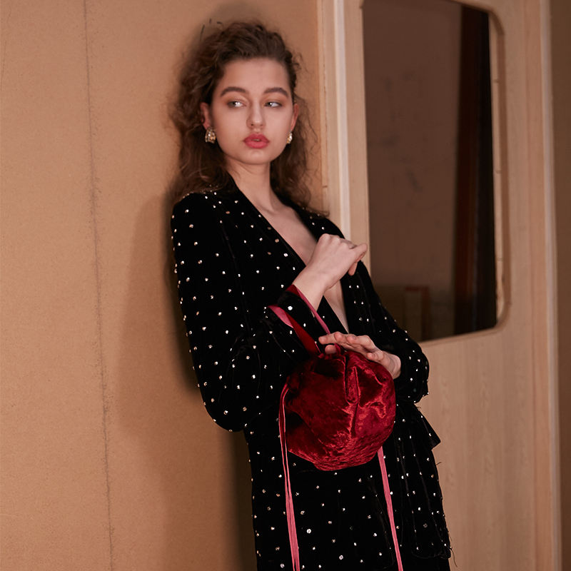 กระเป๋าหูรูดผ้าไหมกำมะหยี่แท้สำหรับฤดูหนาวโลโก้ปักลายแบบสัมผัสขนาด25นิ้ว