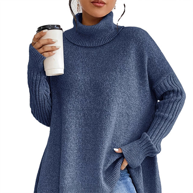 เสื้อสเวตเตอร์ไหมพรมถักทรงหลวมแฟชั่นลำลอง คอเต่า แขนยาว สีพื้น สำหรับผู้หญิง ฤดูหนาว