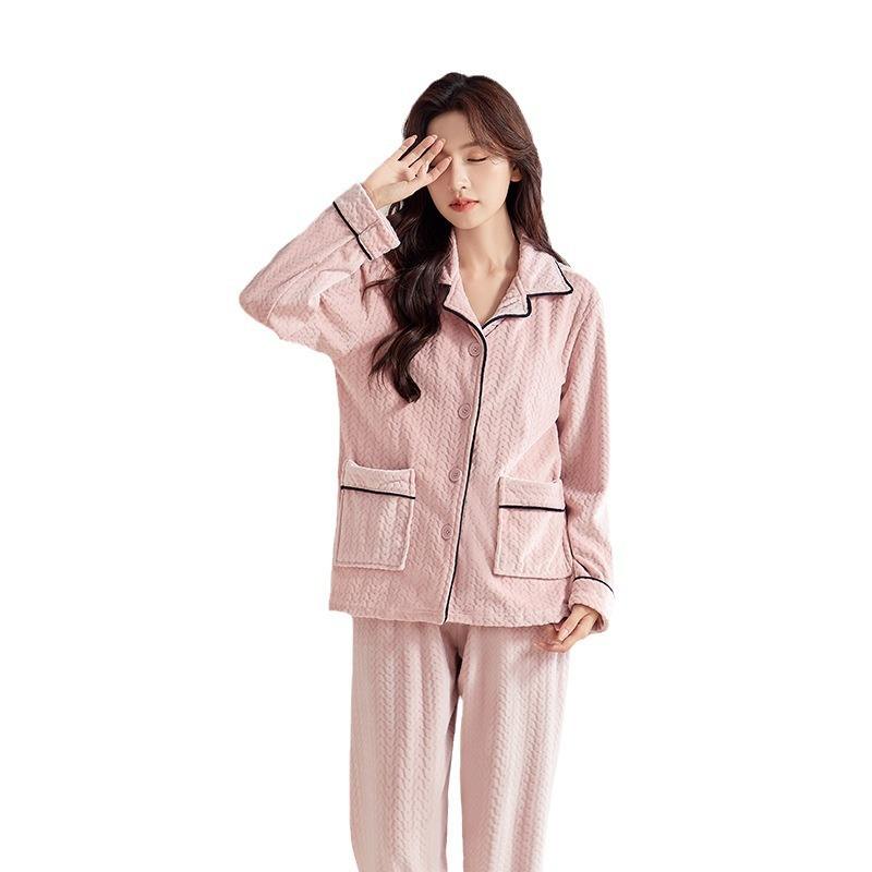 Winter Thermal Luxury Flannel Elegant Loungewear Set Warm Fleece Hooded Top and Pants Home Outfit Soft Coral Fleece