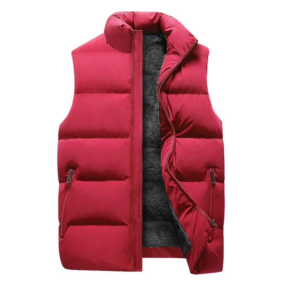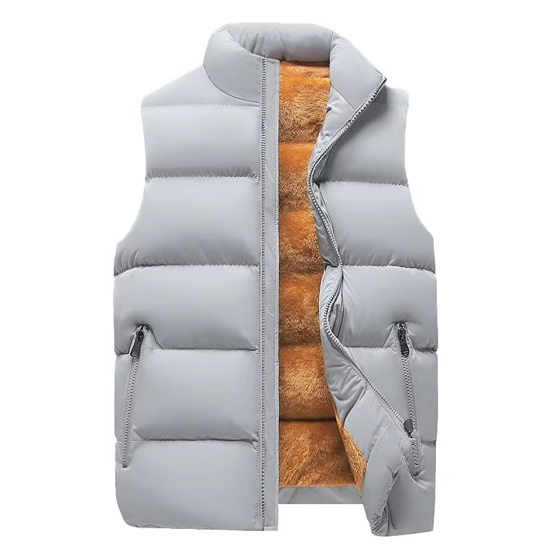 เสื้อแจ็กเก็ตบุผ้าขนแกะแขนกุดคอตั้งกันน้ำสำหรับผู้ชายใส่กลางแจ้งฤดูหนาว